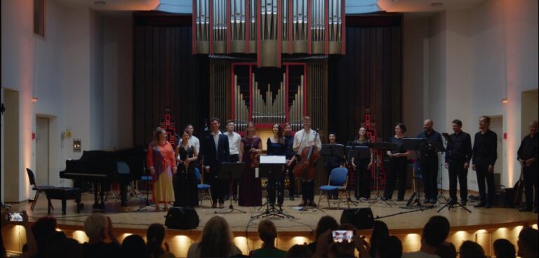 Insgesamt 14 Musikerinnen und Musiker haben unter der Leitung von Wolfgang Hörlin, Stiftskapellmeister der Basilika Unserer Lieben Frau zur Alten Kapelle, die Kompositionen zum Erklingen gebracht. Christian Hambsch, Chortheologe der Regensburger Domspatzen, führte durch das Programm. Marie Gerard, Absolventin und Dozentin der Tanzschule Krippner, begleitete ein Werk tänzerisch.